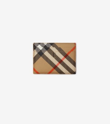 A card case in a cotton blend, printed with the Burberry Check. Part of Burberry Classics, wardrobe foundations with a unique Burberry slant. Four card slots Centre slip compartment Hand-painted edges Comes with a dust bag