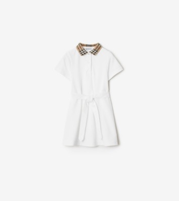 A polo shirt dress in cotton piqué topped with a Burberry Check collar. The style features a belt that can be tied into a bow. Button placket Self-tie belt