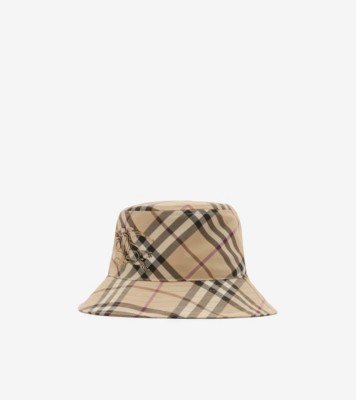 A bucket hat made in Italy, woven in twill with the Burberry Check. The unlined style is appliquéd with the Equestrian Knight Design.