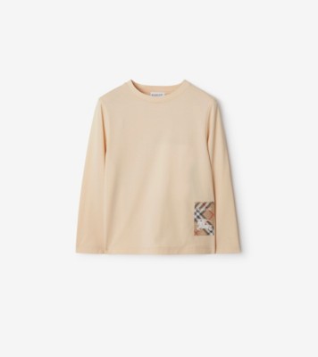 A long-sleeved top in cotton jersey. The style features an appliquéd patch woven with the Burberry Check, logo and Equestrian Knight Design. Part of Burberry Classics, wardrobe foundations with a unique Burberry slant. Rib-knit neckline Appliquéd Burberry Check label at front