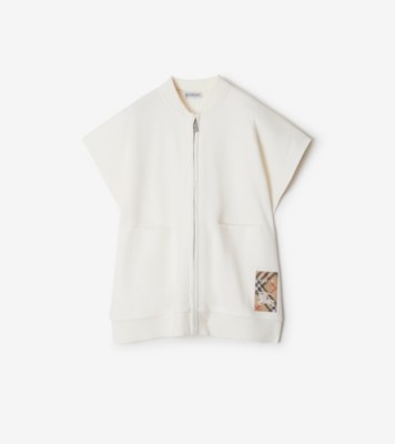 A cape knitted in a wool blend with a hint of stretch, closing with a B-cut zip pull. The style features an appliquéd patch woven with the Burberry Check, logo and Equestrian Knight Design. Part of Burberry Classics, wardrobe foundations with a unique Burberry slant. Zip and side press-stud closure Front patch pockets Rib-knit trims Appliquéd Burberry Check label at side