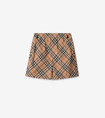 Drawcord shorts in Italian-woven twill patterned with the Burberry Check and appliquéd with our Equestrian Knight Design. Cut to a relaxed fit, the style features secure zip pockets. Zip closure Elasticated drawcord waist Side zip pockets, back press-stud flap pocket Appliquéd Equestrian Knight Design at back pocket
