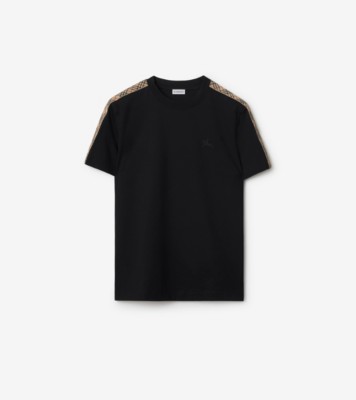 • Check Trim Cotton T-shirt in Black - Men | Burberry® Official