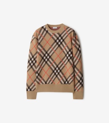 Check Wool Mohair Blend Sweater in Sand – Men, Nylon | Burberry® Official
