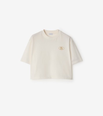 Cropped Cotton T-shirt in Chalk - Women | Burberry® Official