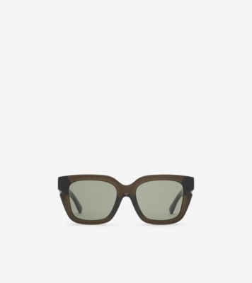 A pair of square-frame sunglasses made in Italy from acetate. The front is shaped with an angular notch and the wide temples are inlaid with brushed metal, engraved with the Burberry Check and our logo. Scratch-resistant dark green lenses with 100% UV protection Engraved Burberry lettering at temples Comes with a hard leather case and cleaning cloth Also available in an alternative fit