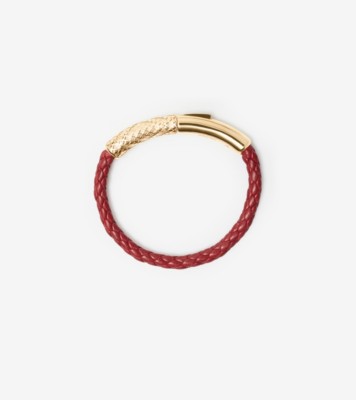 A bracelet made in Italy from braided leather and gold-plated brass, engraved with an intricate check pattern and our logo. Push-button clasp closure Engraved Burberry lettering at inner Comes with a dust bag