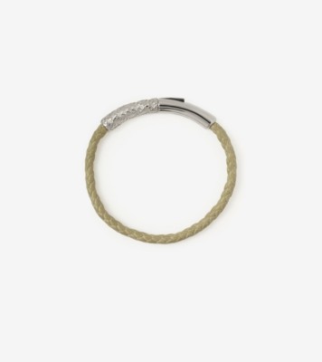 A bracelet made in Italy from braided leather and palladium-plated brass, engraved with an intricate check pattern and our logo. Push-button clasp closure Engraved Burberry lettering at inner Comes with a dust bag