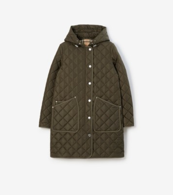 • Quilted Nylon Coat in Dark military khaki - Women | Burberry® Official