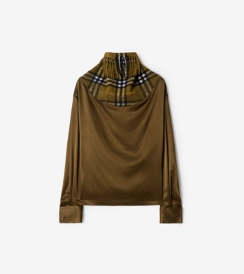Satin and Check Scarf Top in Camp – Women, Technical | Burberry® Official